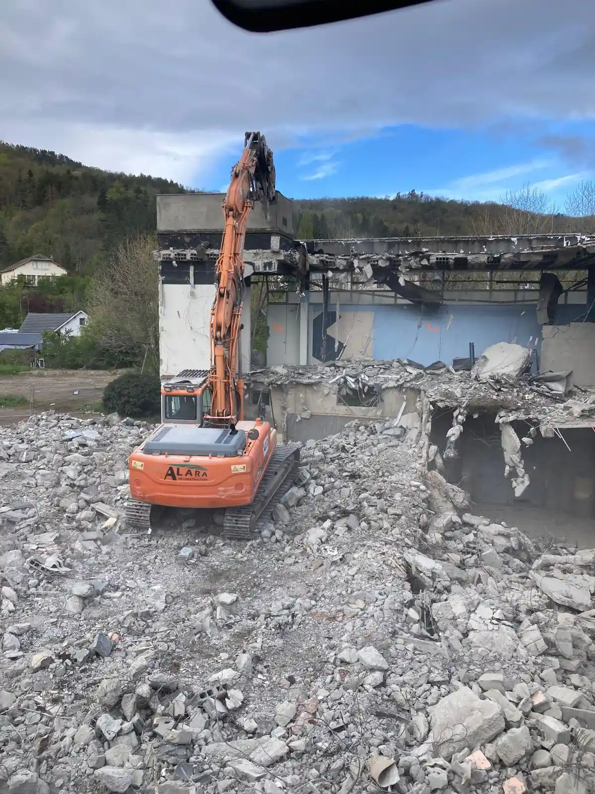 Notre équipe est à l’œuvre sur le chantier de démolition des Allées Blatin, où chaque étape illustre notre engagement en matière de précision, de sécurité et de responsabilité environnementale. Après une première phase de curage intérieur comprenant l’arrachage des cloisons et des planchers, le piquage au dernier étage et la mise en place d’étais pour renforcer la stabilité du bâtiment, nous avons procédé à la démolition de la cage d’escalier, du mur et de la cheminée en collaboration avec nos partenaires spécialisés. Les gravats sont acheminés vers les sites agréés Valormat et Valobat pour une gestion optimisée et responsable des déchets. Les travaux incluent également la déconstruction progressive de la toiture à l’aide d’une nacelle de 26 m, l’installation d’un échafaudage pour sécuriser la zone et protéger les riverains, ainsi que la mise en place d’une grue afin d’optimiser la logistique sur site. Grâce à l’expertise de nos équipes et de nos partenaires comme AMPEN et CIREME, la progression du chantier se poursuit avec rigueur et maîtrise, en alliant performance technique et respect des délais.